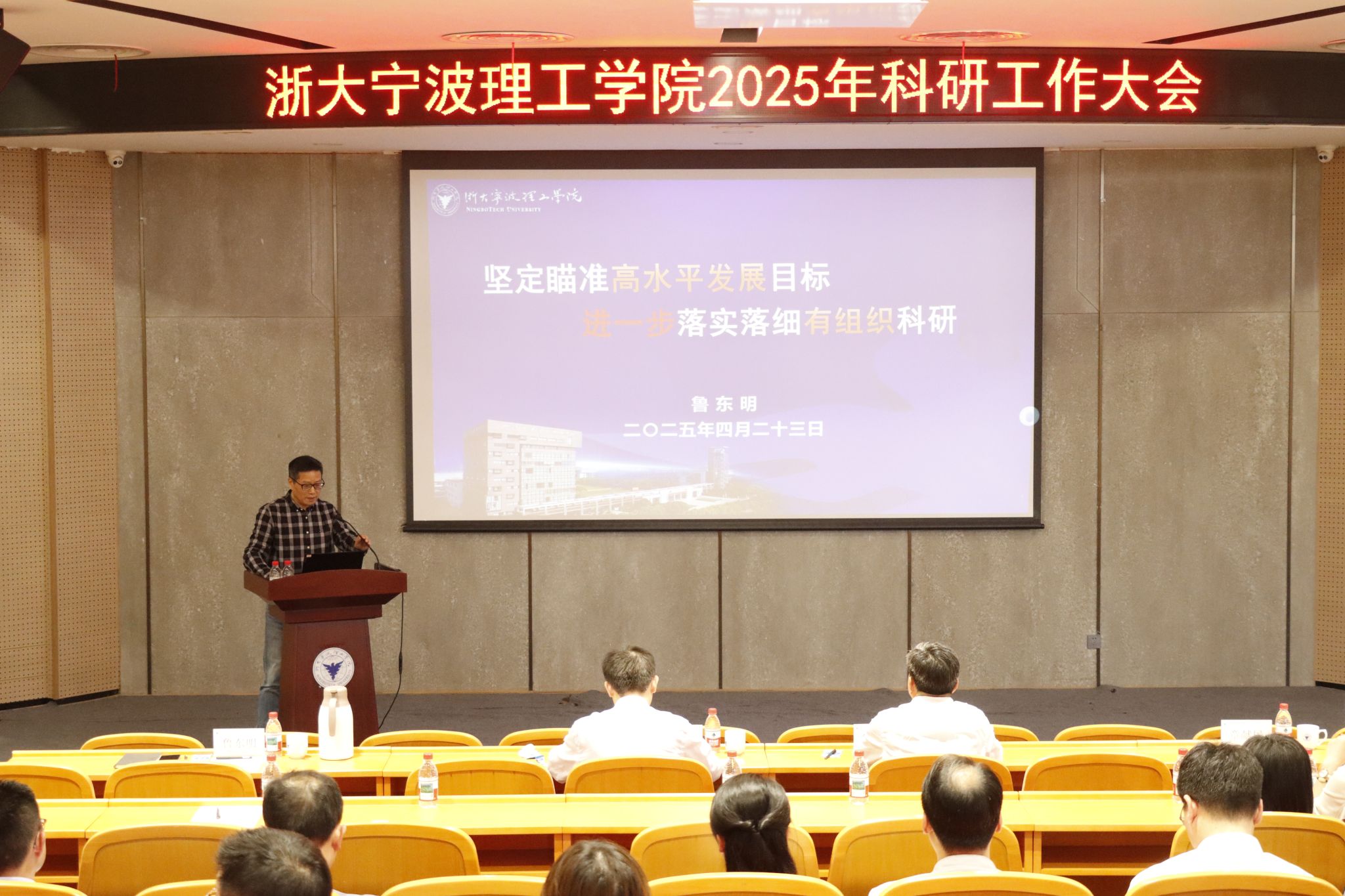 杨德仁指出,学校自2022年谋划部署“有组织科研”以来,秉持“承载创新、服务先行、根植学科、科教融合”的工作思路,在全体“浙大宁理人”的共同努力下,各项工作不断取得新进展。2025年,是“十四五”收官之年和“十五五”谋划之年,也是落实“一校一策”行动方案的关键之年,科研工作面临更高要求和更大挑战。杨德仁强调,学校科研工作要聚焦区域发展打造特色,将“浙大宁理坐标”嵌入“国家区域大局”;要聚焦学科建设提升质量,做有质量的科研;要聚焦成果转化激发动能,将科研优势转化为现实生产力、转化为教学资源。科研工作有必要进一步树立质量意识,靶向攻坚高水平成效,切切实实为“升大攻博”筑牢根基。