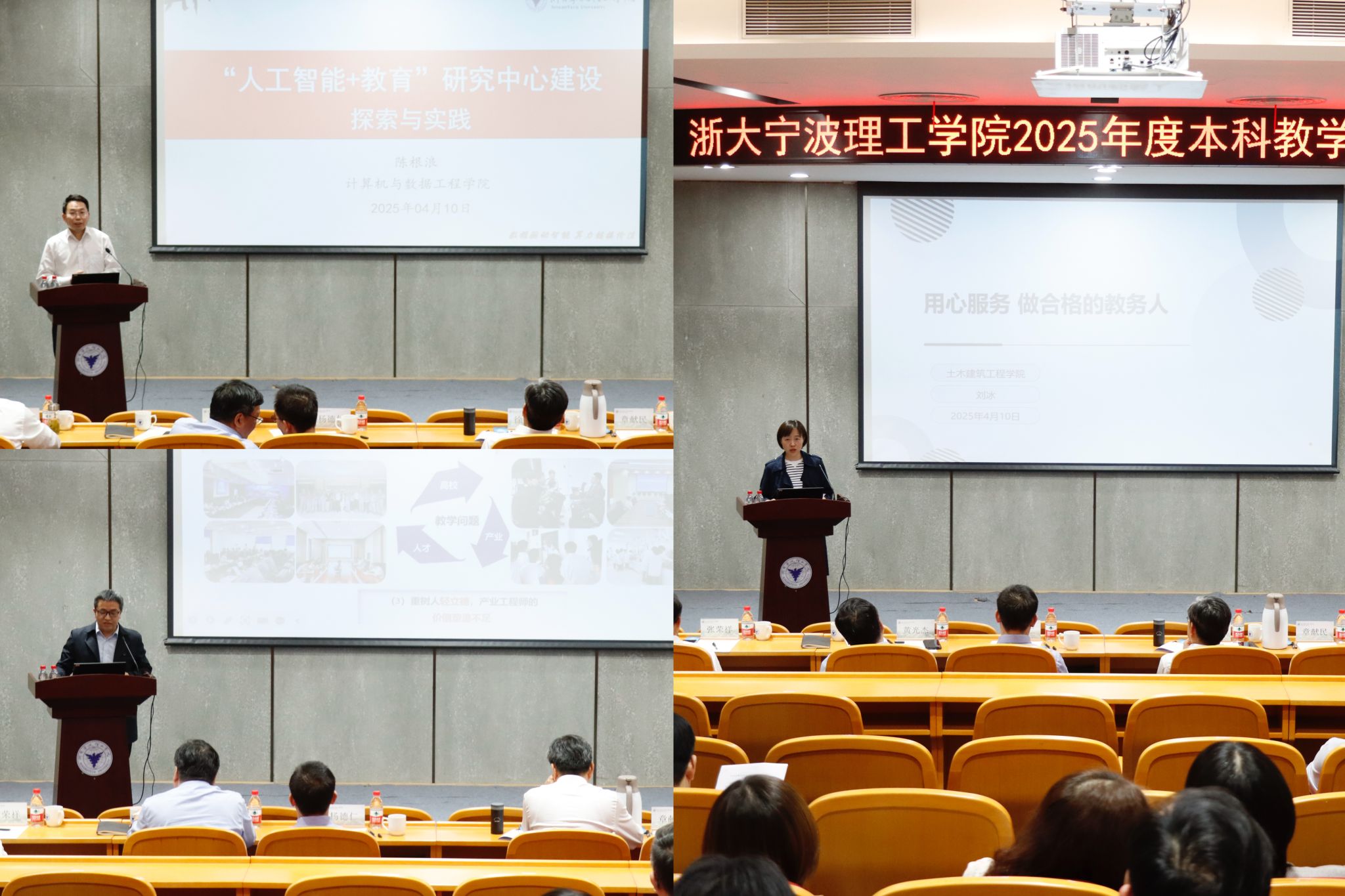 会上,数据学院院长陈根浪、生化学院副院长吴志革、土建学院教务员刘冰分别围绕智慧教育探索、产教融合实践、教学管理创新等3个方面作经验交流。