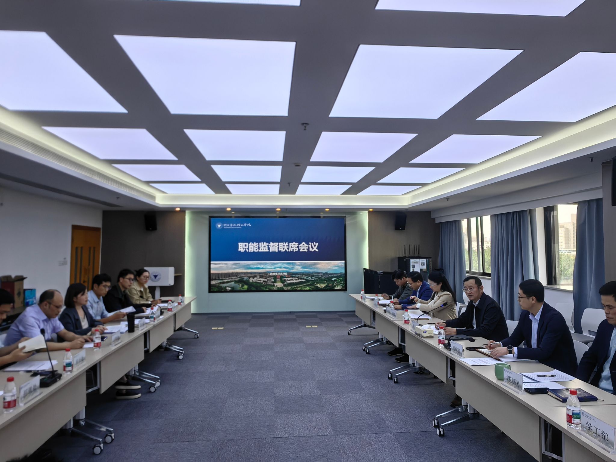 为进一步压实职能部门监管责任,推动职能监督与纪检监察监督贯通协同,10月29日,学校召开职能监督联席会议。党委委员、纪委书记、监察专员胡文汉主持会议并讲话。
