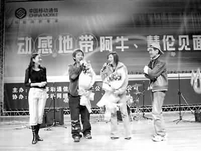 日前,“动感地带阿牛、苏慧伦见面会”在浙江大学宁波理工学院举办。在参加这次活动的过程中,两位歌星参观了宁波的几个景点,并对宁波的环境赞不绝口,表示有机会将来这里举办个人演唱会。周良