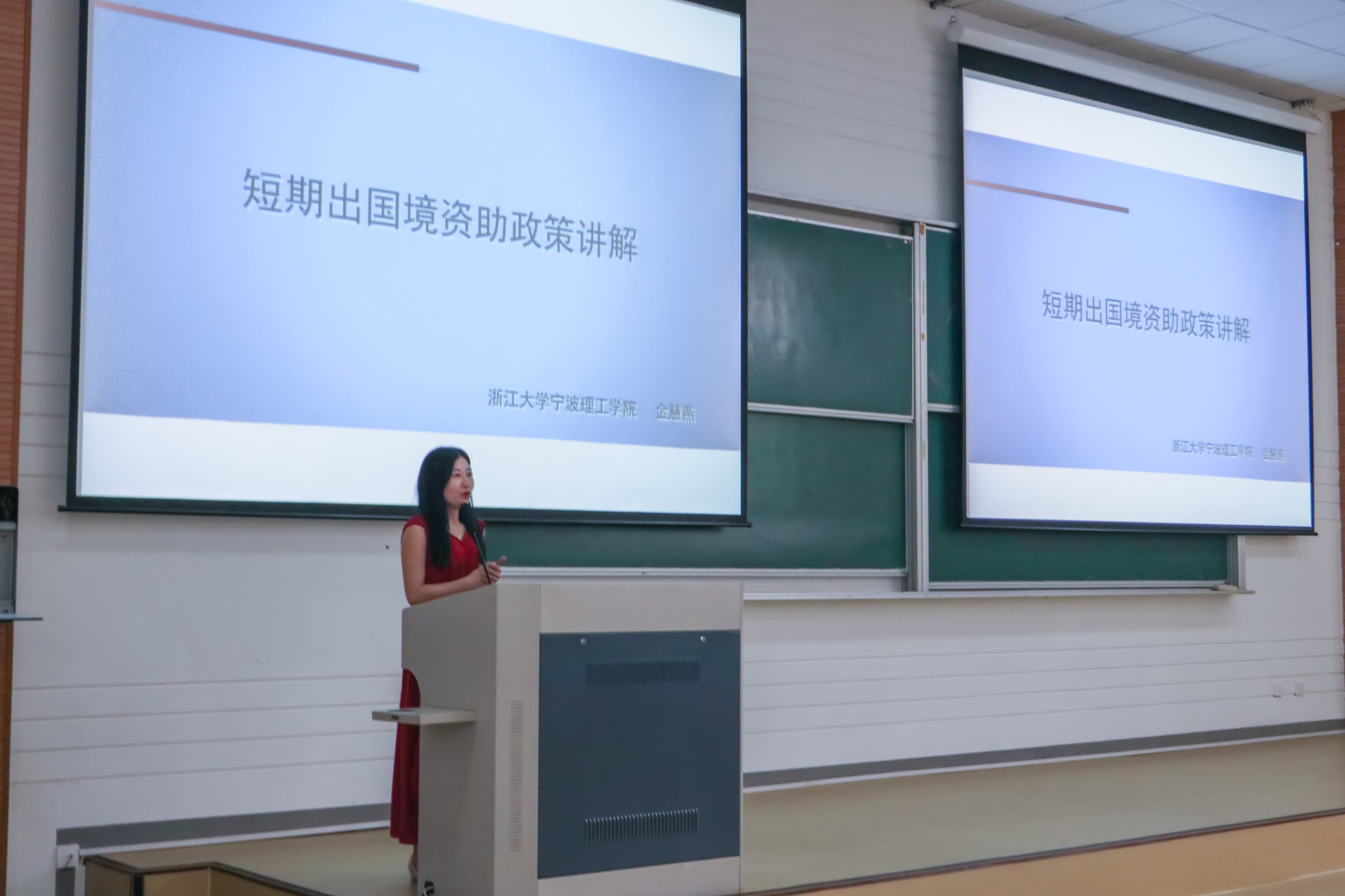 教务处徐升槐老师向同学们介绍了短期出国(境)交流学分认定的有关规定,详细讲解了认定原则。保卫处副处长叶卫树老师以同学们的安全需要展开,通过大量的真实案例,生动地、全面地向同学们介绍了有关出行安全、诈骗防范、毒品问题等注意事项。外事处副处长程萌老师围绕外事纪律,就国外环境、学生在外签证、领事保护等具体问题做了温馨的出行提醒。学生处金慧燕老师向同学们热情地传达了出境游学资助政策的具体实施办法,并且强调了校方对于学生出境交流意愿的鼓励与支持。会后,每位同学签署了《浙江大学宁波理工学院学生短期赴国(境)外交流学习承诺书》,并领取了《宁波市民安全出国指南》、《出国文明安全早知道》等相关材料。