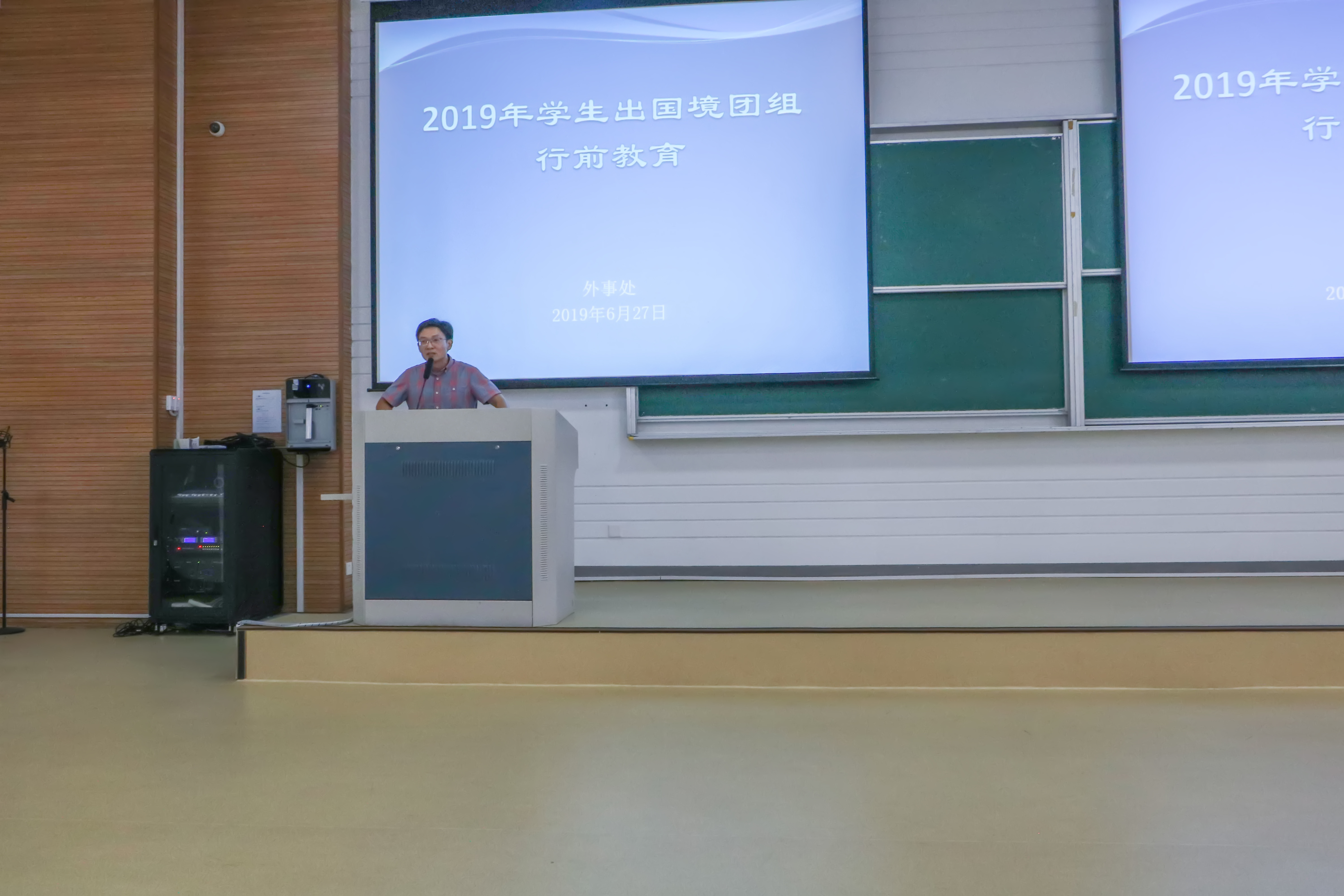6月27日下午,学校短期出国(境)交流行前教育会在SB102举行,参加本次行前教育的是2019年短期出国(境)交流各团组的带队老师、全体参团学生以及学工部、教务处、外事处、保卫处的相关负责老师。教育大会由学校学生处副处长郑毅主持。