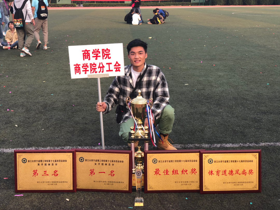 作为学生干部,他踏实做好“上传下达”的工作,向上和负责老师反映班级的发展情况,向下和同学们传达相关任务要求等。在担任金融162班班长期间,他带领班级获得了浙天先进集体、先进班级、优良学风班、宁波市先进大学生集体等荣誉称号。