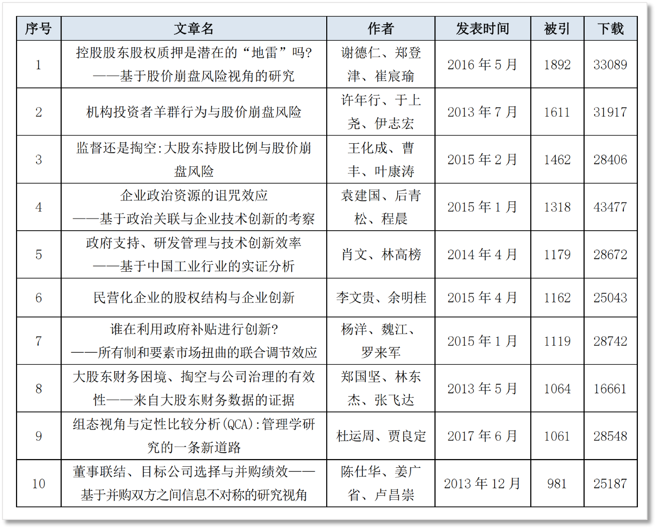 近十年《管理世界》高被引论文(2012~2021年)