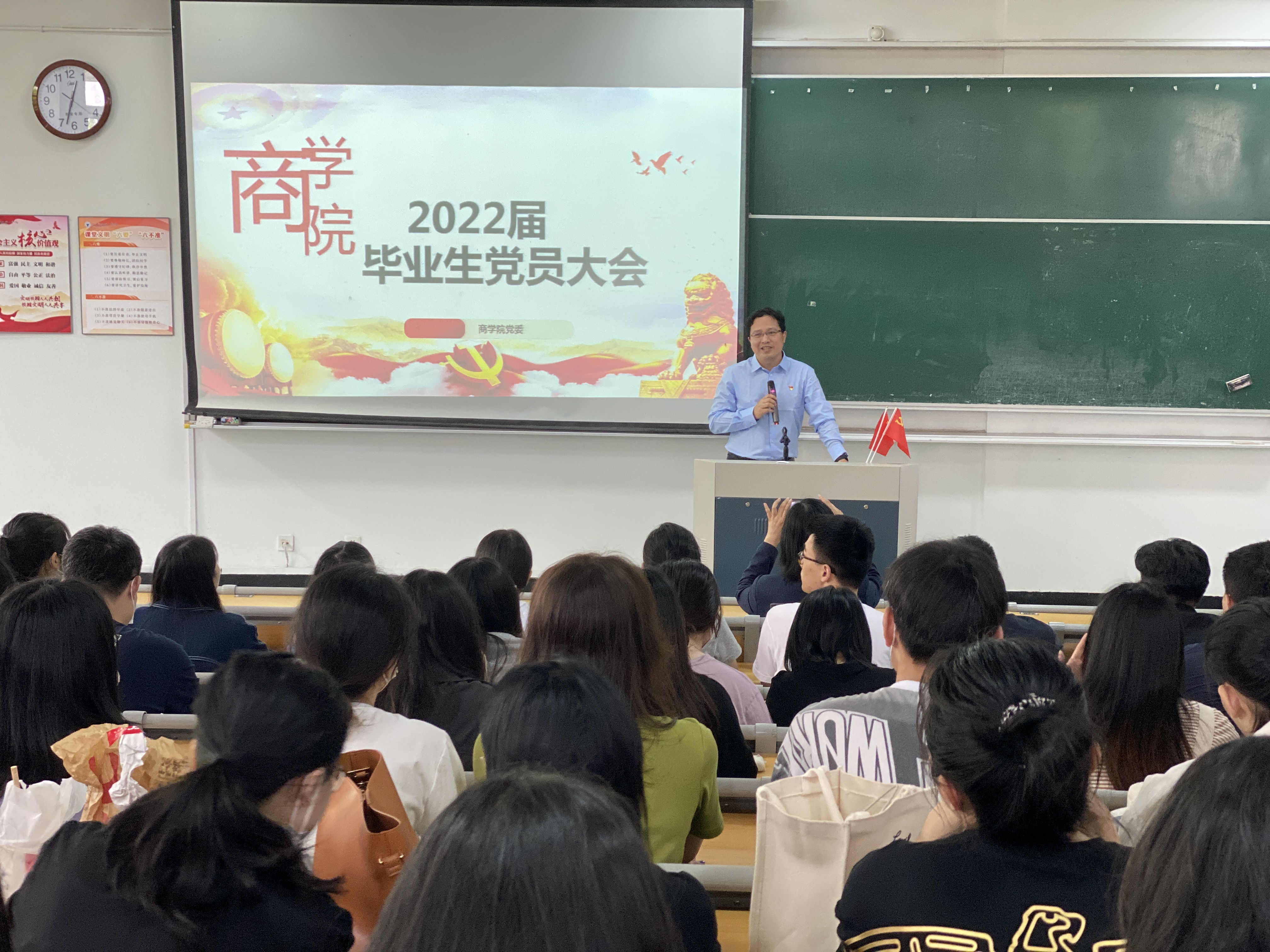为进一步开展爱校荣校教育,落实毕业生党员“七个一”主题教育,引导毕业生党员坚定理想信念、提升党性修养、增强组织观念,持续发挥党员骨干示范引领作用,商学院于5月25日在SC117召开了学院2022届毕业生党员大会。学院党委书记兼执行院长林承亮、全体学生党支部书记、毕业生党员参加会议,会议由学院党委副书记、纪委书记吴琼主持。