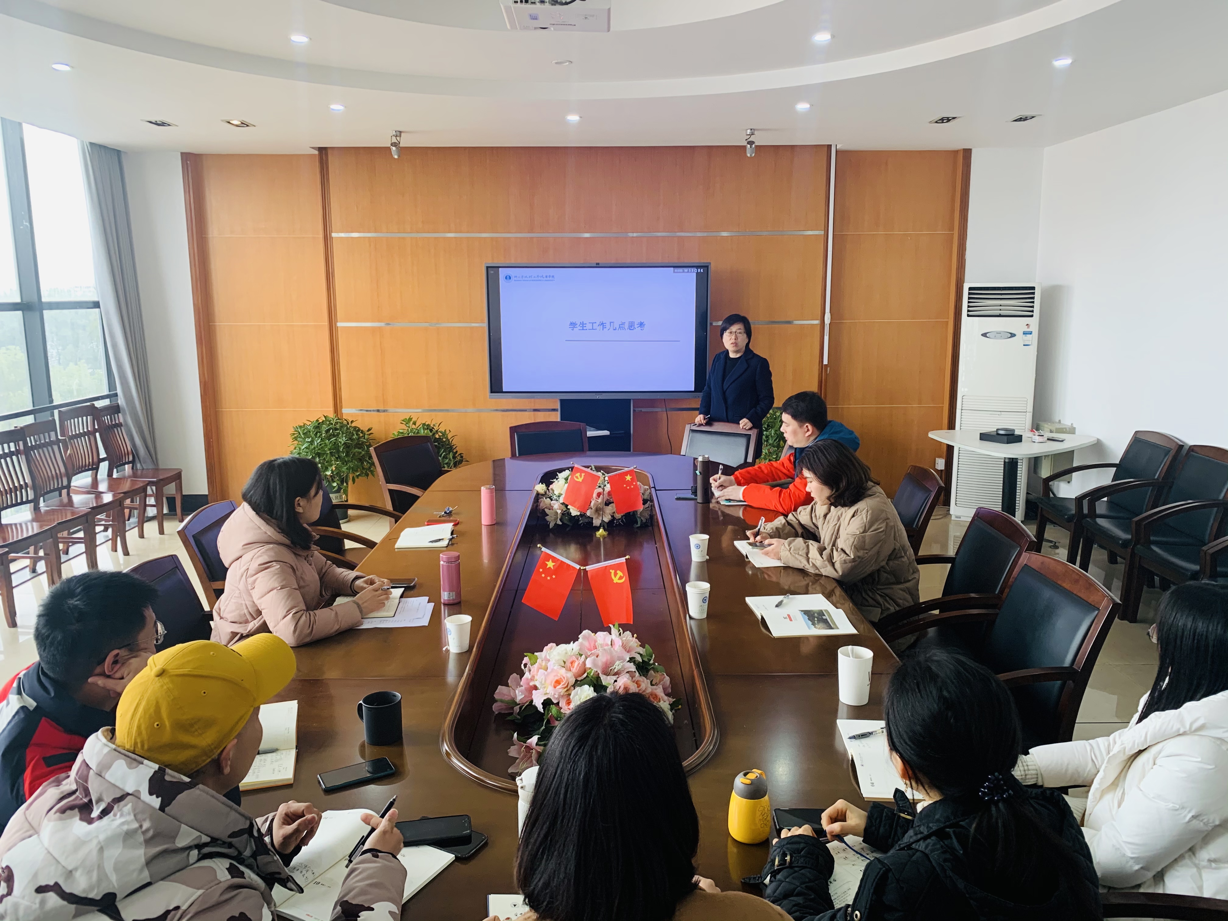 会上,学工办辅导员针对各项学生工作开展了交流讨论。
