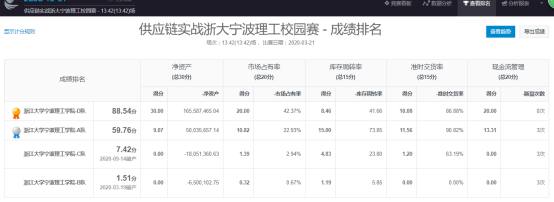 因为我还未接触专业课,报名参加供应链大赛的时候,我既害怕自己能力不够,又充满了对尝试未知事物的渴望。我觉得“特训”两个字完全不夸张,一场比赛两个小时,打完比赛还有半个小时以上的总结,一天打两场。我们特训组四名成员,短短几天就从对这个比赛一无所知,每次进步一点,到现在校内赛第一名,净资产一亿六的成绩。这一周的特训是我在这次漫长的寒假中最充实的一周。