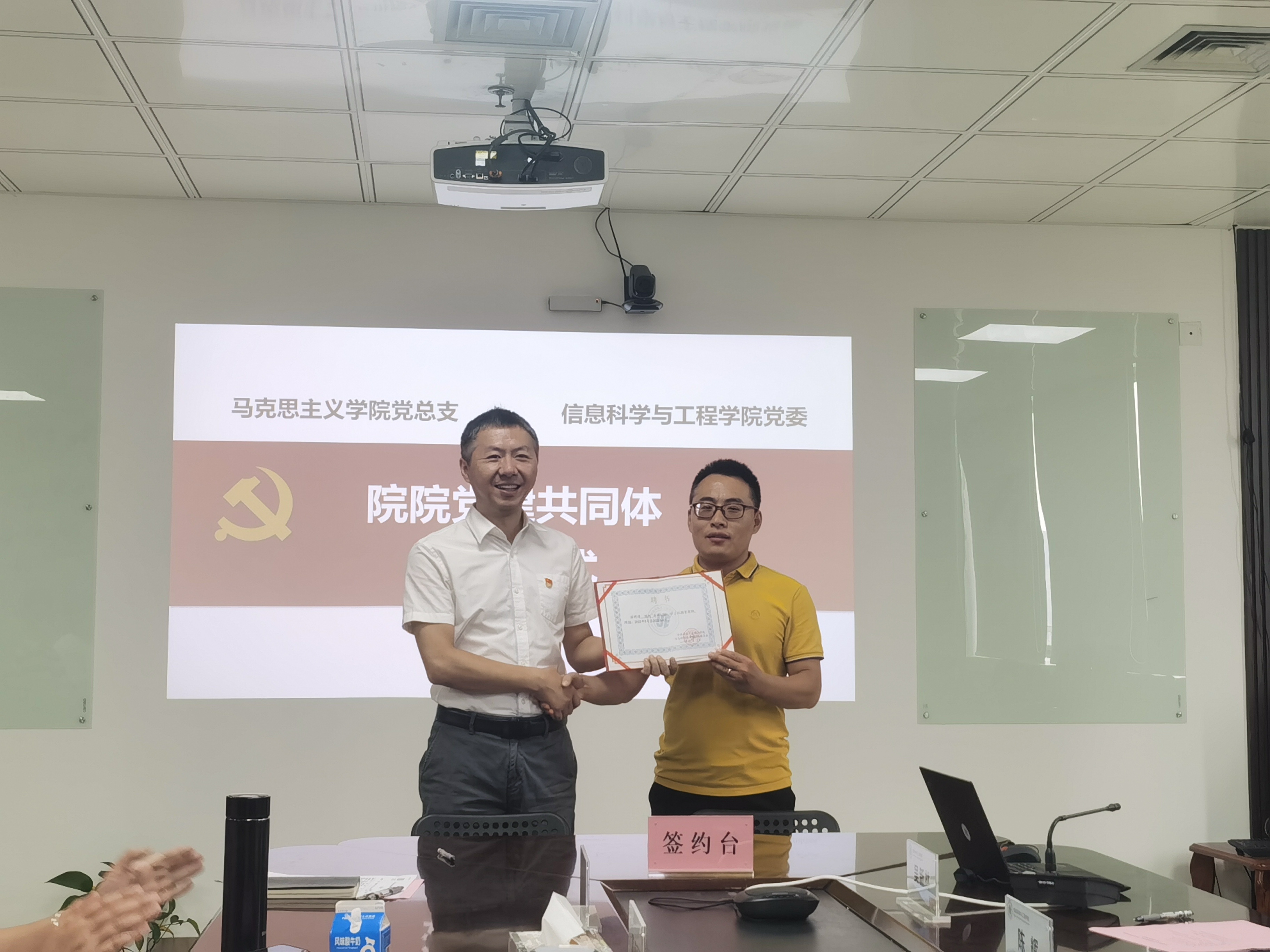 会上,双方签订了党建共同体合作协议;马克思主义学院教师陈辉受聘为我院初心学习社指导教师。