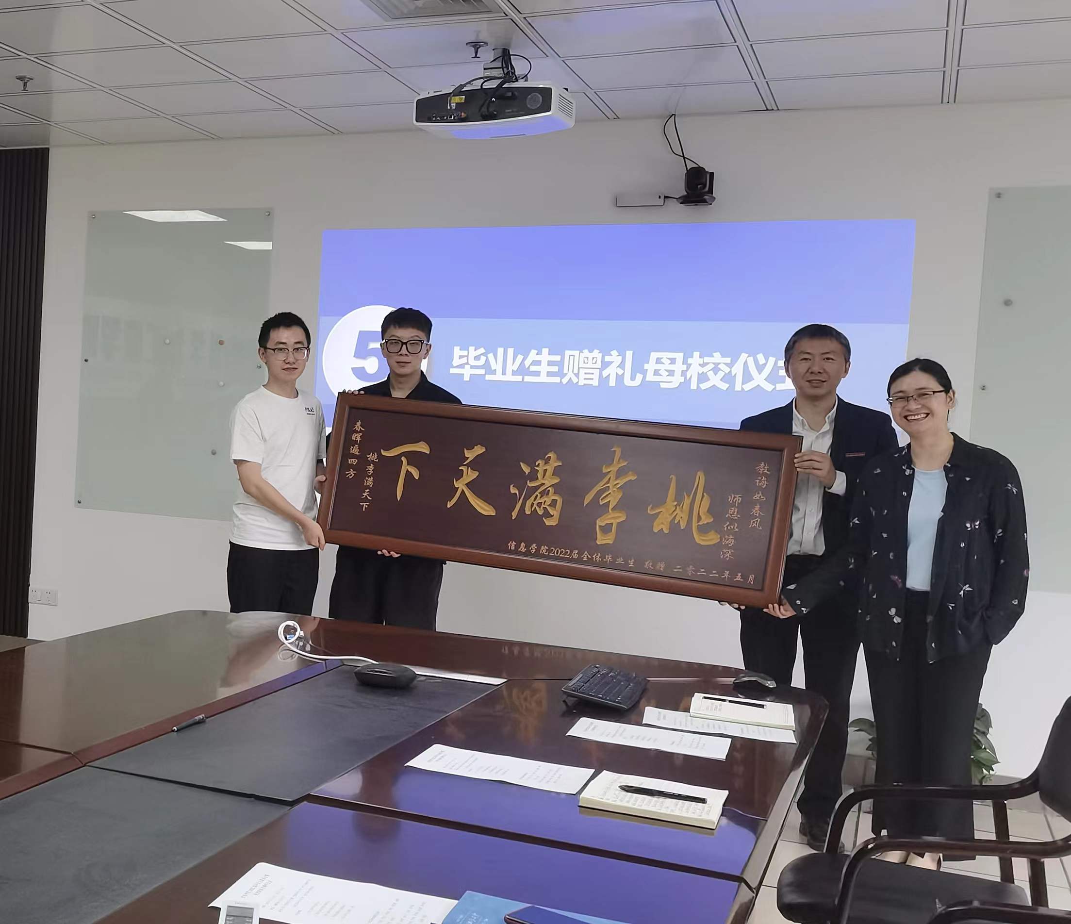 5月25日下午,信息学院2022届毕业生感恩母校捐赠仪式在学院石鳞902-1会议室隆重举行,郑毅、方芳、学工办教师代表等参加了仪式。