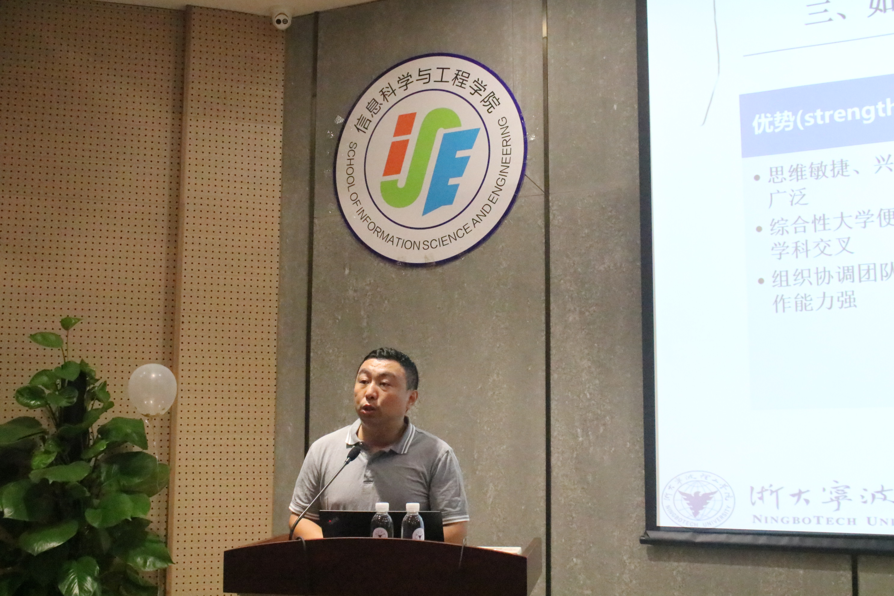 学生会主席方严同学介绍了本次信息文化节的主要内容,分为“一起看世界”国际交流宣传周,“一起论智能”智能科技论坛,“一起来竞赛”趣味科技竞赛,“一起办巡展”学科竞赛巡展,“一起做科研”学生科研立项等七个篇章,每一场活动都融入了学院专业特色和人才培养的方向。