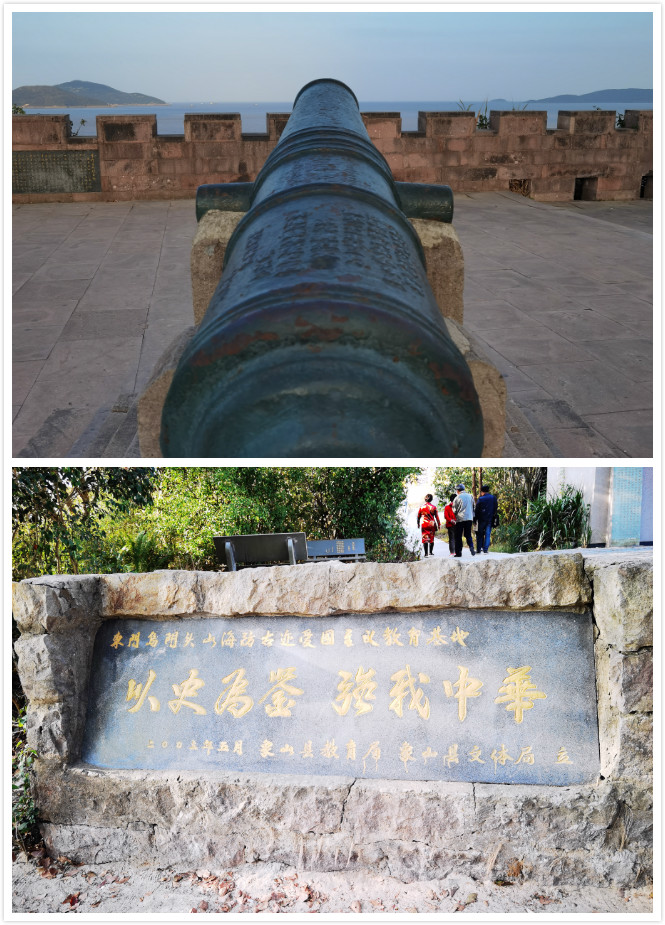 随后,党员们来到位于象山县东门岛门头山海防古迹爱国主义教育基地。山顶的两门铜炮威严地正对前方的出海口,仿佛两尊守卫海疆的“钢铁战士”,虽历尽沧桑,却无时无刻不在提醒着后人,这里曾经的炮火硝烟和艰难过往。也警示着现在的我们居安思危,国耻勿忘,报国有志,守土有责。
