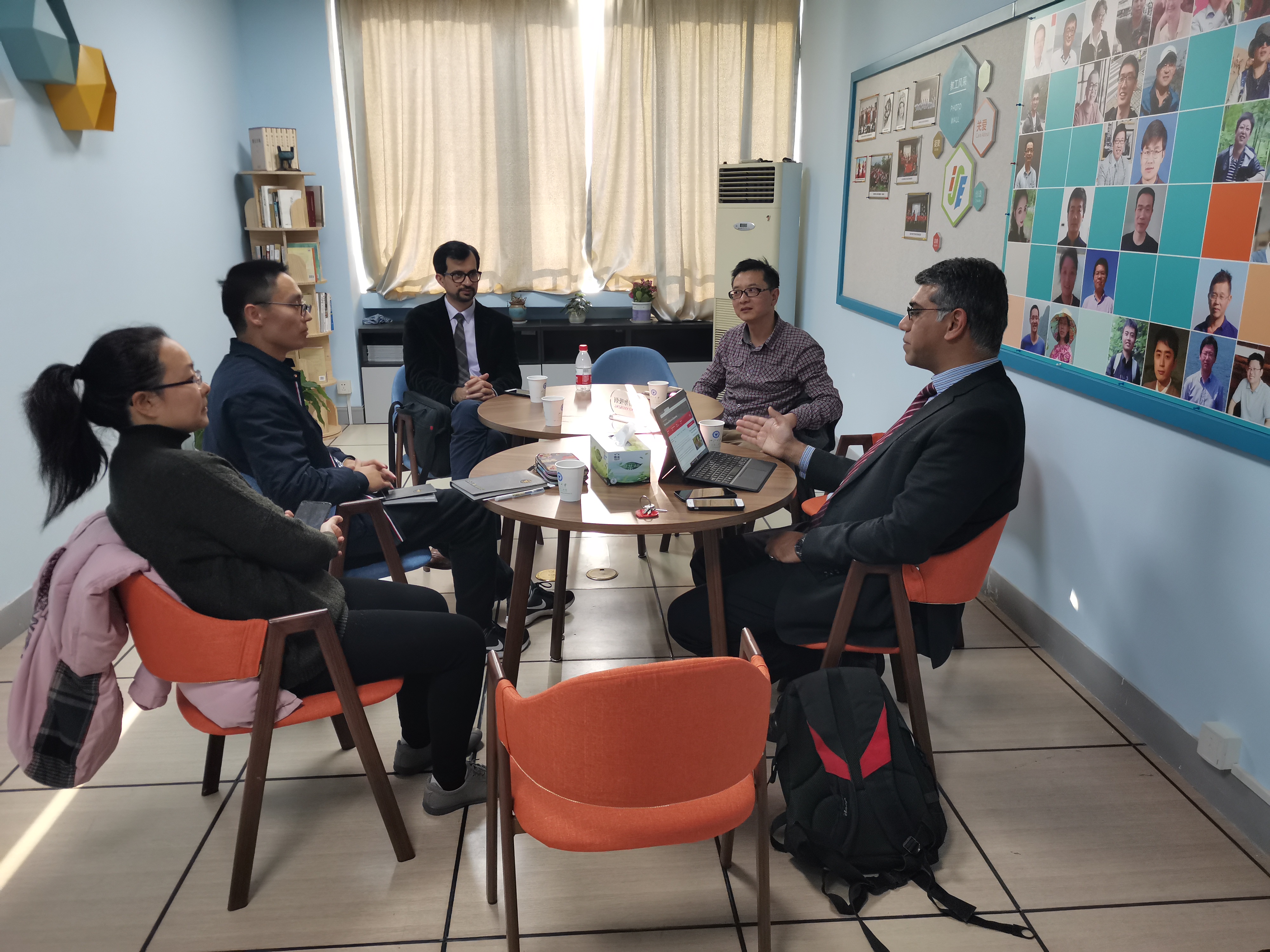当天下午,信息学院吴飞青副教授、赵祥红老师和吴成玉老师与女王大学的两位来访老师进行了深入的教学研讨。Hamza博士主要介绍了该校的电子电路类课程的基本情况,包括学分设置,考核方法,实践教学内容设计及实验室配置等详细内容。我院三位老师也介绍了学校电子电路类课程的现状和目标,双方就如何激发学生的学习兴趣、如何更好培养学生的实践动手能力以及实践项目的注意事项等共同关注的问题进行了热烈讨论。
