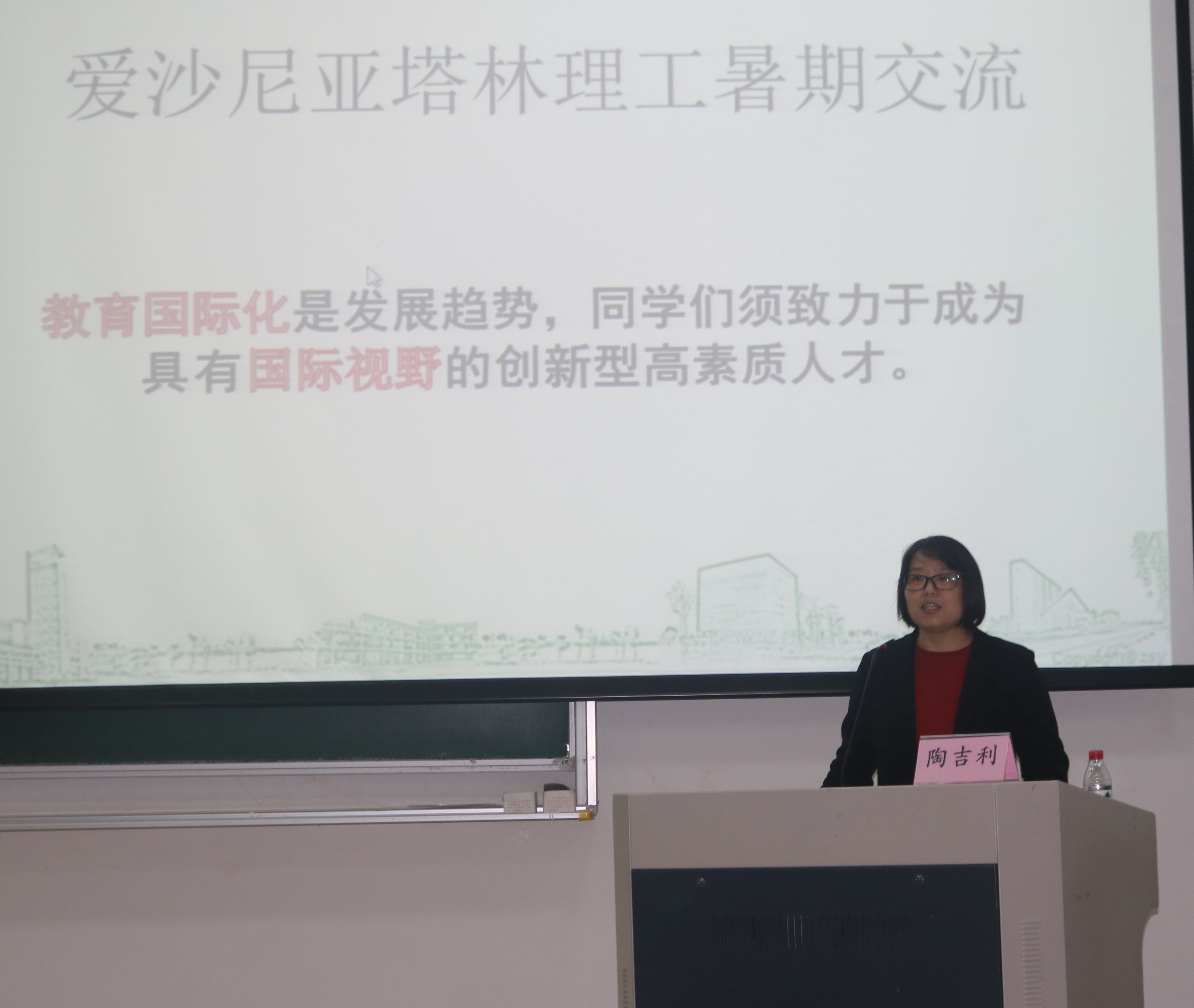 信息学院副院长陶吉利老师作为2019年赴爱沙尼亚塔林理工大学暑期交流团的带队老师则详细介绍了该项目相关情况。塔林理工大学始建于1918年,是爱沙尼亚首都塔林最古老和规模最大的大学。该项目是专业交流项目,历时15天,主要交流内容是基于3D技术的机器人控制和应用。陶老师勉励大家多关注学校及学院的国际交流项目政策,充分利用学校及学院提供的各类资源。