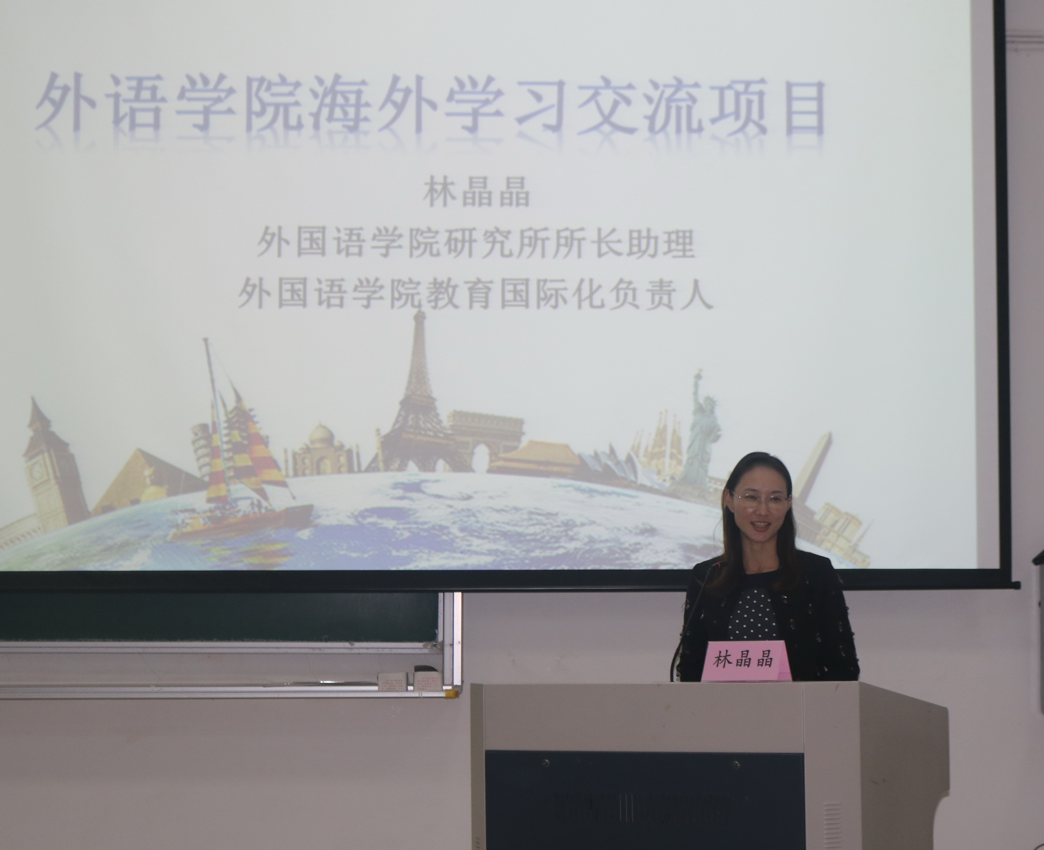 外语学院林晶晶老师带领同学们“游历”了美国拿撒勒大学、波兰波兹南密茨凯维奇大学、加拿大英属哥伦比亚大学等多个合作院校,用一个个参与者的亲身经历生动地描述了合作项目的相关情况。林老师鼓励大家要敢于走出自己的小世界,看看外面的大世界,才能够“行学天下、梦想开花”。