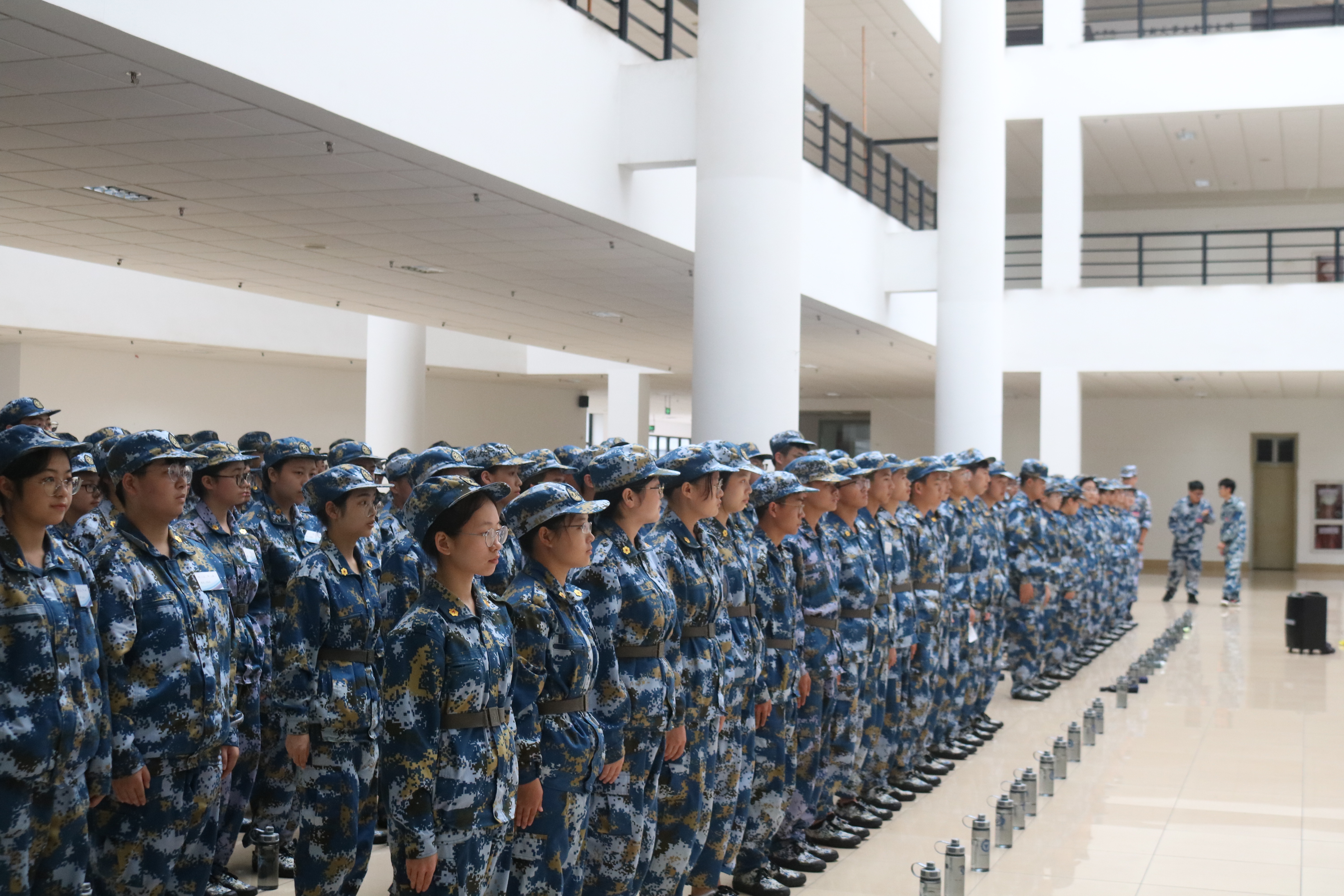 响亮的口号,挺拔的军姿,丝毫没有因为连绵阴雨的天气而失去气势。这是八连、九连同学们集合迎接信息学院领导的慰问。9月1日下午,信息学院院长黄进,副院长裘君、副院长陶吉利、党委副书记方芳、思政主管杜明珠等领导、老师带着慰问品到雨天室内训练场地NC大厅慰问学院参训的2019级新生和帮训教官们。