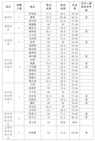 2.男辅导员岗位欧阳成辉(准考证号20210304318,考分71分)面试前主动弃考,由郭悍成(准考证号20210304314,考分65.5)递补。